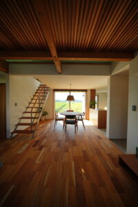 このモデルハウスの建設中に大工さんが窓を開けて風入れるだけで真夏でもすごい快適に作業ができると喜んでいたそうです。笑