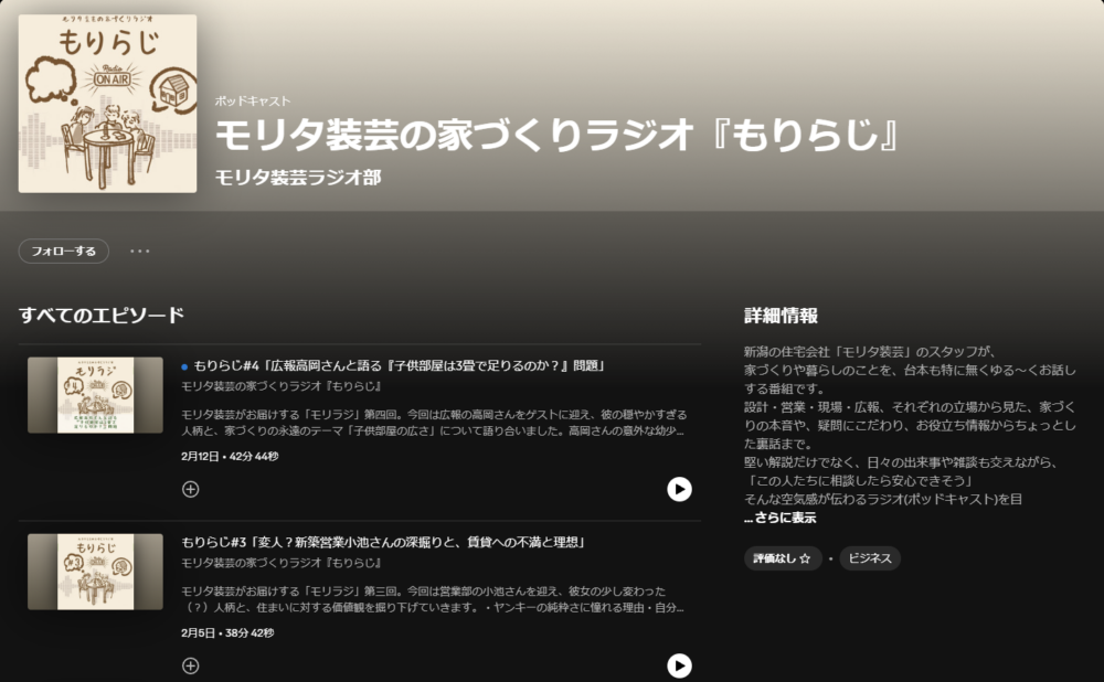 そこで私たちモリタでも、自分達のパーソナリティ的な部分を伝えたいという目的、、簡単にいえば、モリタ装芸ってどんな人間が居るんだろう。どんな人間が家作ってるんだろう、、という事を伝えたいなぁ~という事で、それなら今だったらラジオがいい!という事になったわけです。