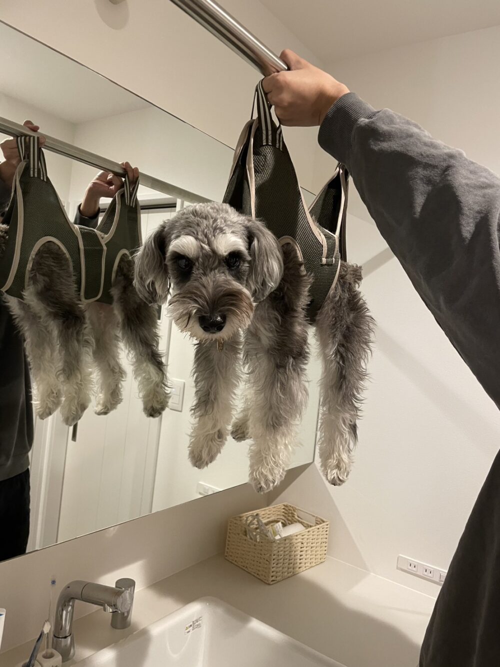 洗面台で洗う場合は、お湯が出る仕様になる場合がほとんどですが、シンクを深い形のものにしてあげると中型犬程の大きさのワンちゃんであればすっぽり入って、洗って乾かすのも同じ場所で行うことができるので人気です。