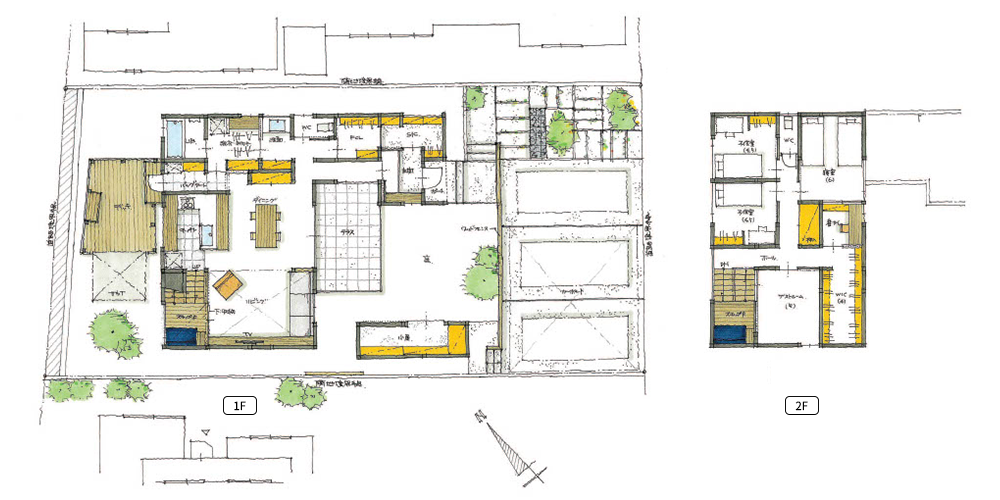 プライベートガーデンとスキップフロアのある住まい