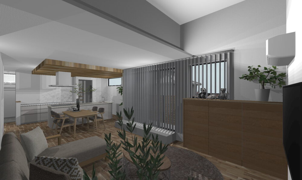 内と外をゆるやかにつなぐ開放的な空間は、鶴ケ谷東モデルハウスをご見学されたお施主様が「ぜひ自分の家づくりにも取り入れたい」と感じられたこだわりのポイントです。