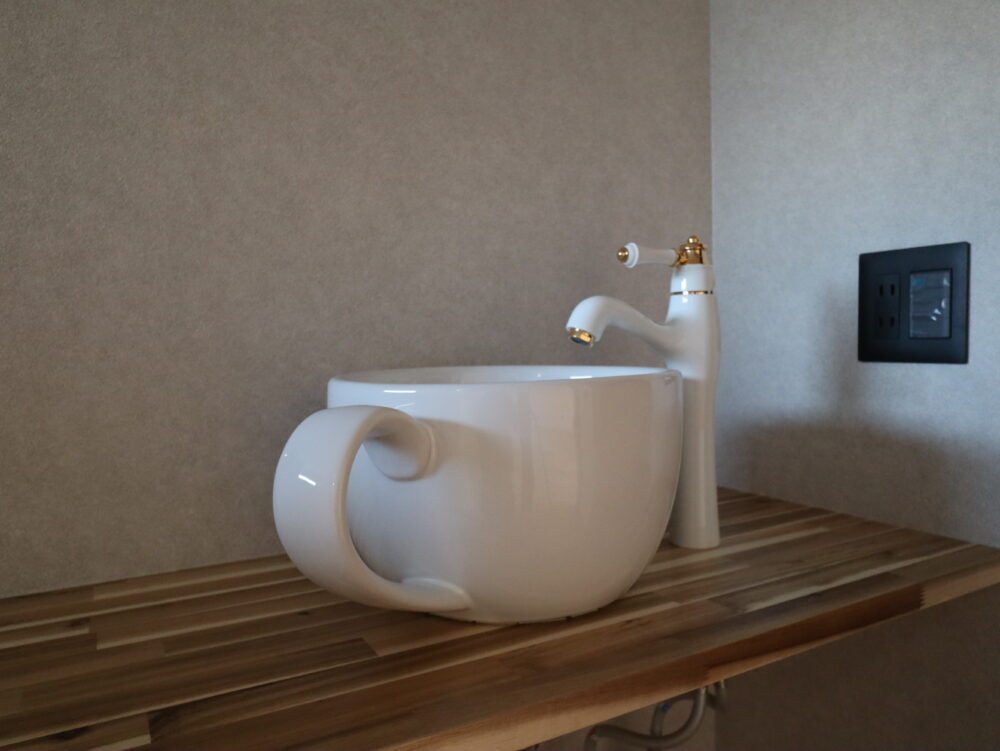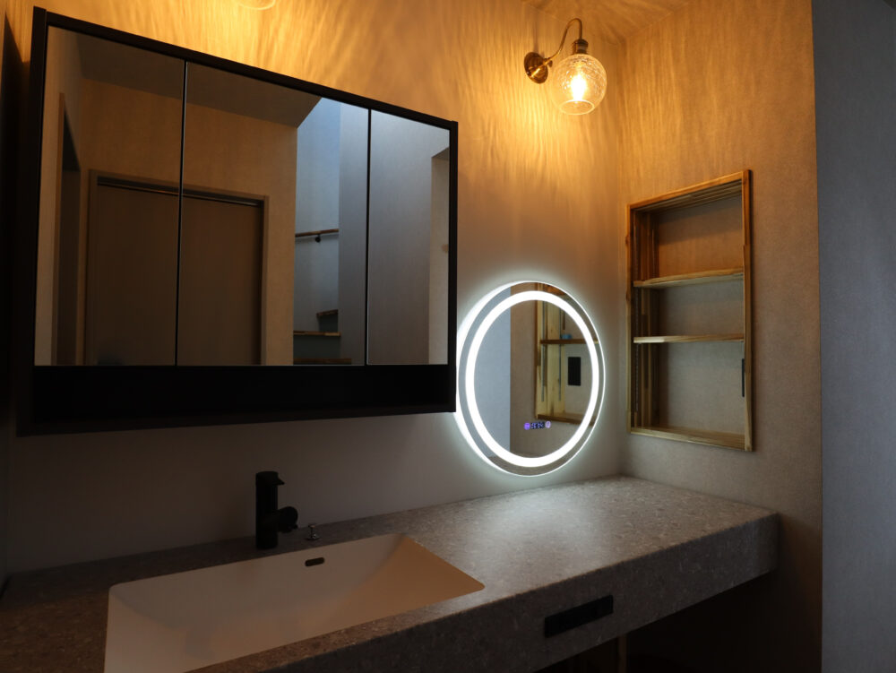 仕事や趣味などに没頭できる書斎スペース、お施主様の好みが色濃く出た手洗い場にもぜひご注目ください。