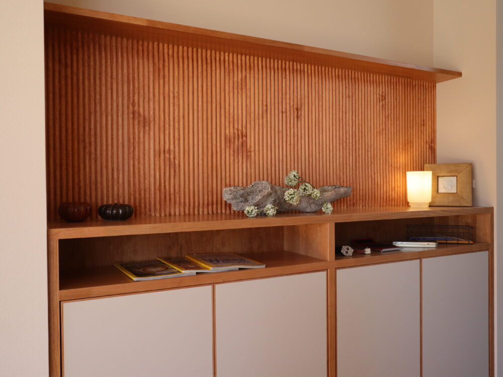 散らかしがちな日用品もスッと片付き、居心地のいい空間をキープできます。 - 木のぬくもり感じる、造作家具のある暮らし
