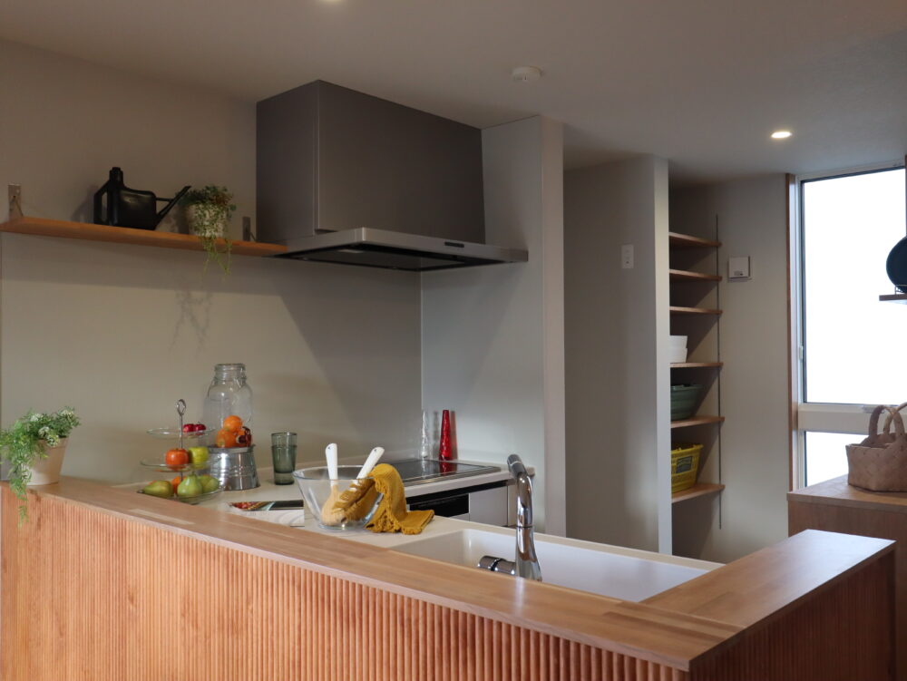 動線が短くなり、効率よく調理や片づけができるL字型のキッチン。