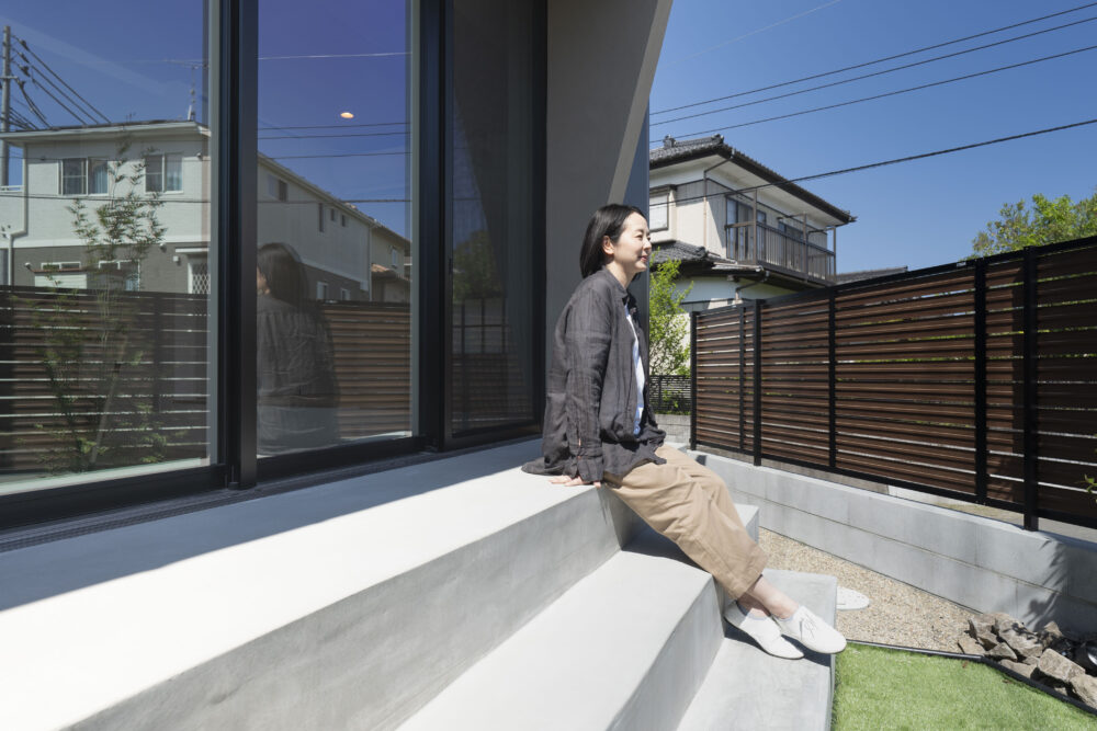 - モルタルデッキを室内に取り込み、外との繋がりを感じるリビング