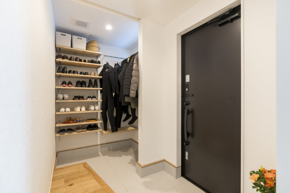 敷台から手を伸ばせばシューズクロークの靴がすぐ取り出せる絶妙な距離感も見事。