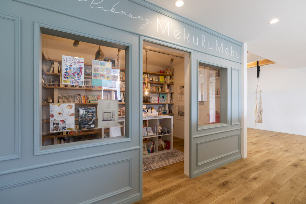 海外の本屋をイメージしたという本の部屋「MekuRuMeku」。水色のポップなショーウインドーは見ているだけでワクワク! 窓は本がディスプレイできるよう一工夫してある。