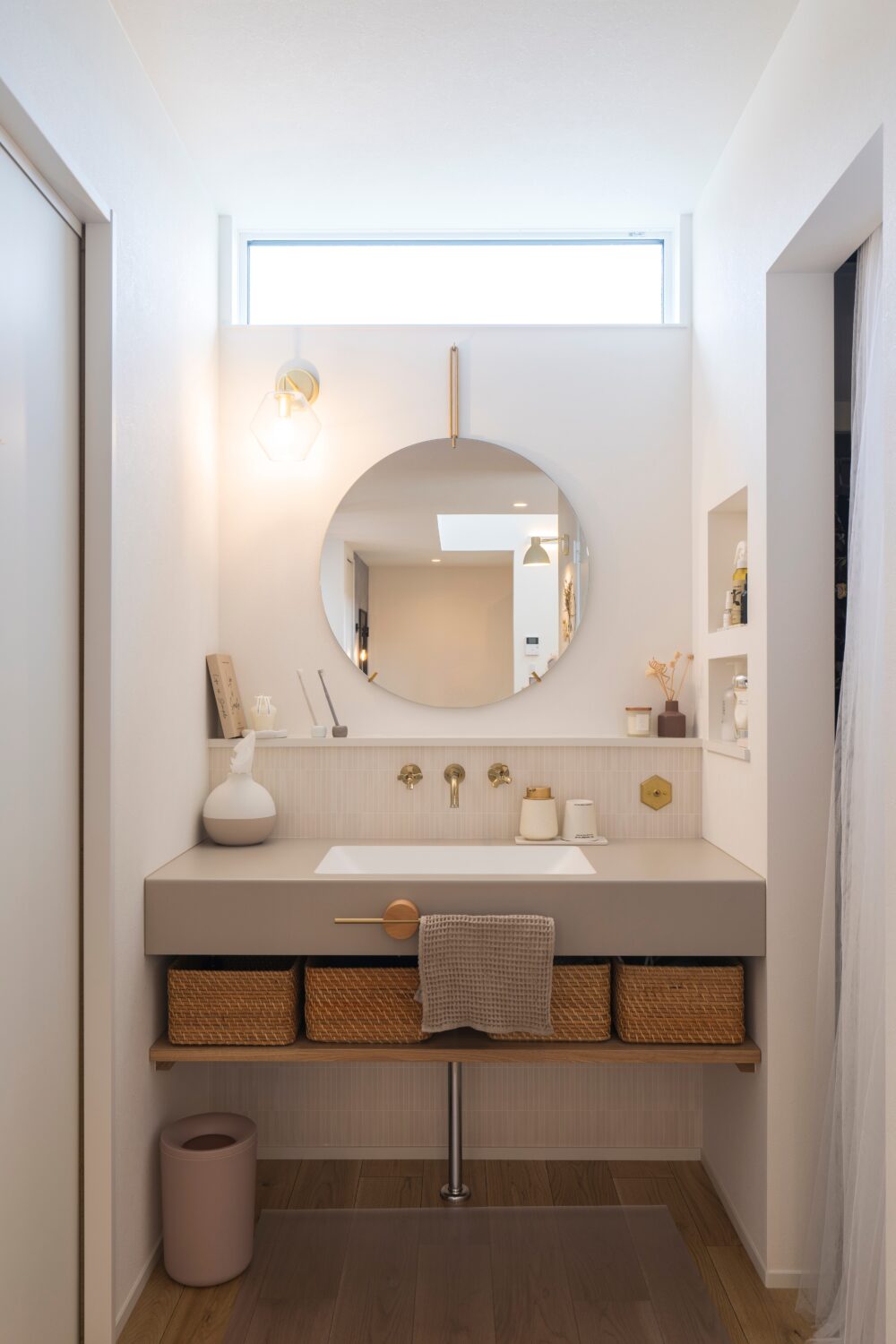 ほかにもワークスペースや洗面台など、グラフィックデザイナーでもある奥さんがデザインしたプランに、プロ目線のプラスαを加えて「最高傑作」(Wさん夫婦)が出来上がった。