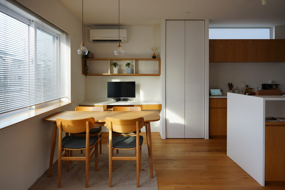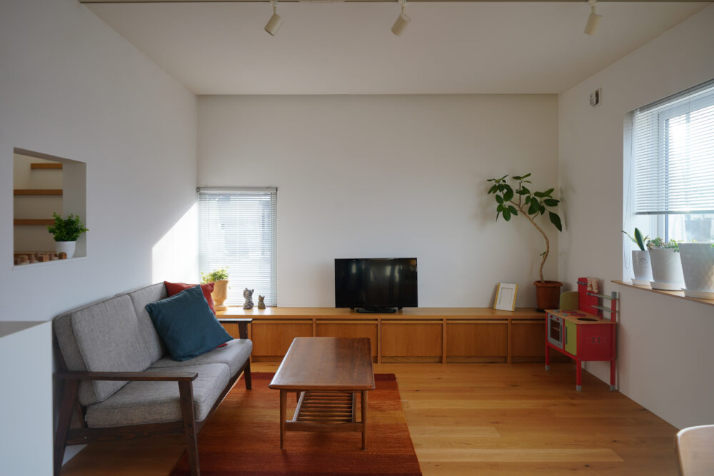 造作カップボードやTVボード、ダイニングテーブルまで揃っているから、入居したその日から暮らしがスタートできます。