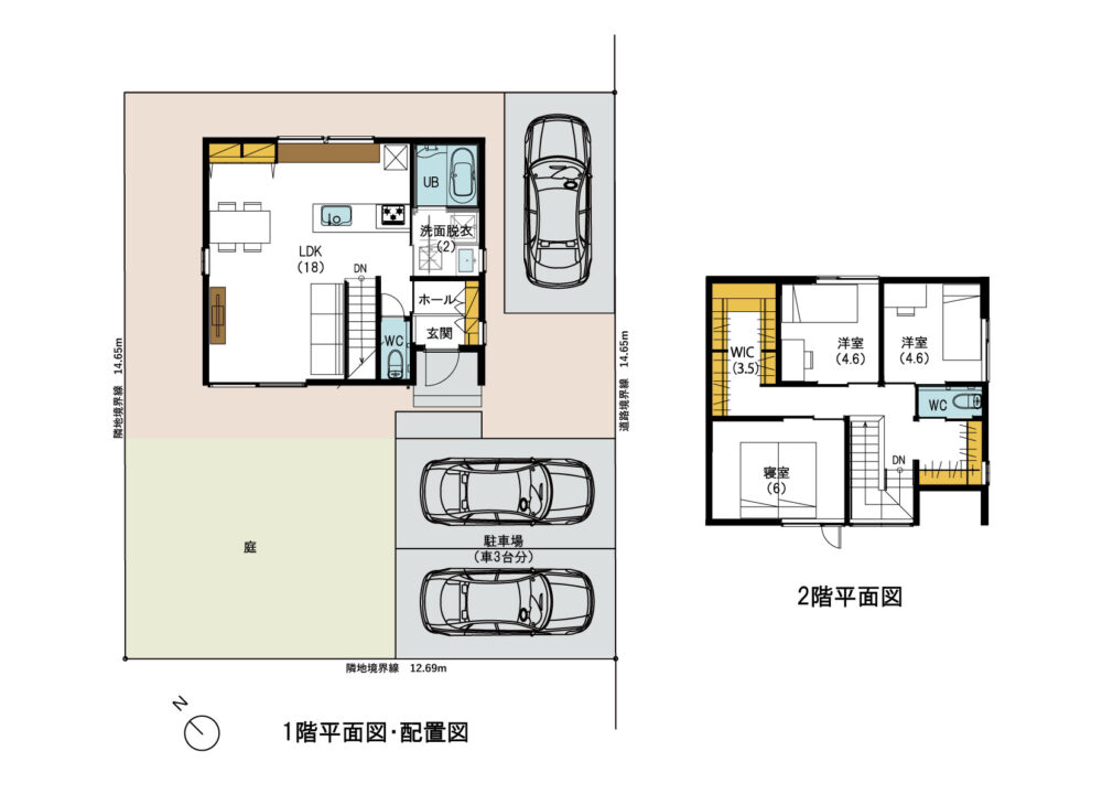 ■建物面積:1階/44.71㎡ 2階/44.71㎡ 合計/89.42㎡(27.07坪)