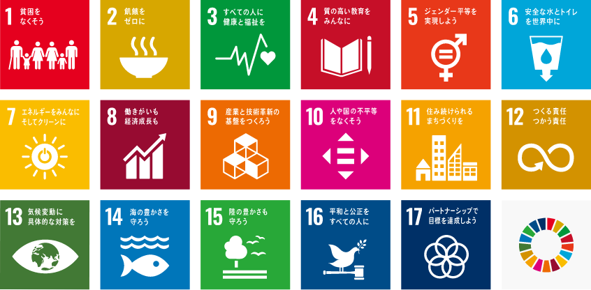 当社は国連が提唱する「持続可能な開発目標(SDGs)」に賛同し、持続可能な社会の実現に向けた積極的な取り組みを行ってまいります。