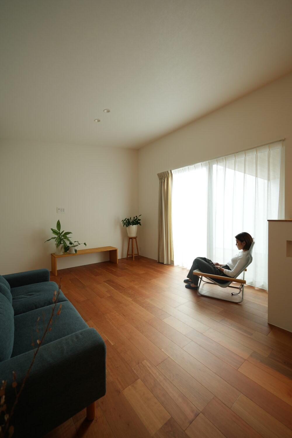 外からの視線は遮りつつ、家のどこに居てもお庭を楽しめて、家の中にも「ちょっと一息つける」スペースつき。