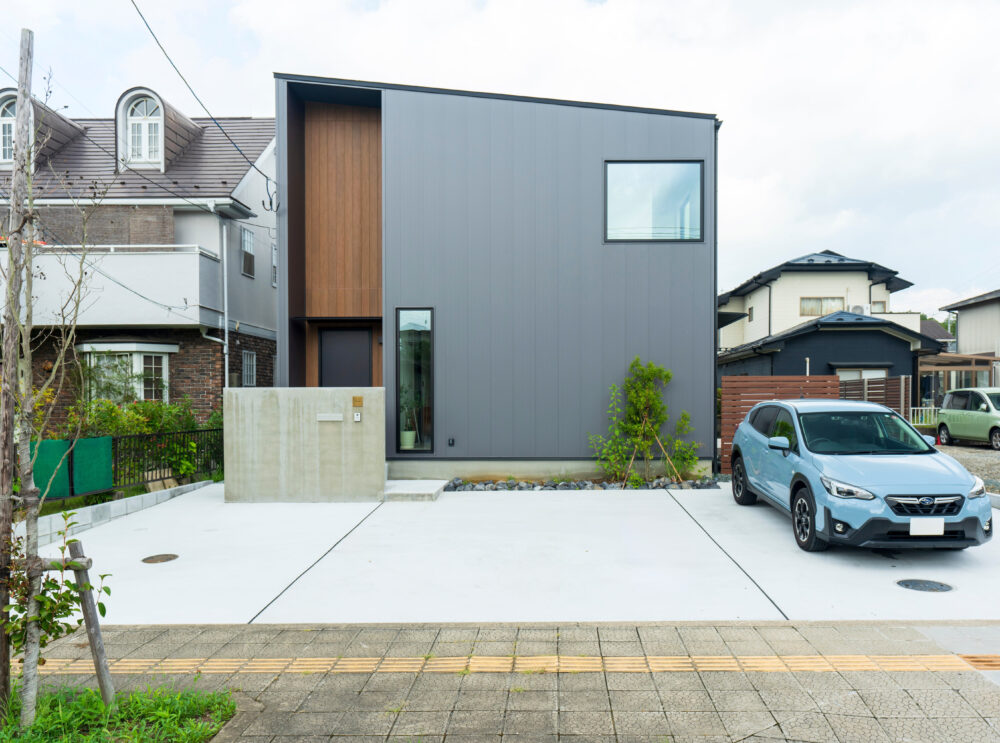 キューブ型の片流れ屋根がスタイリッシュな外観