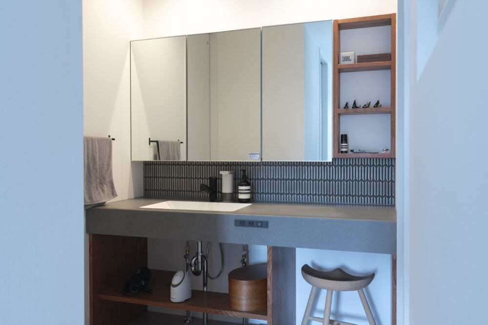 夫婦で並んでゆったり使える洗面台で、毎朝の身支度も快適に