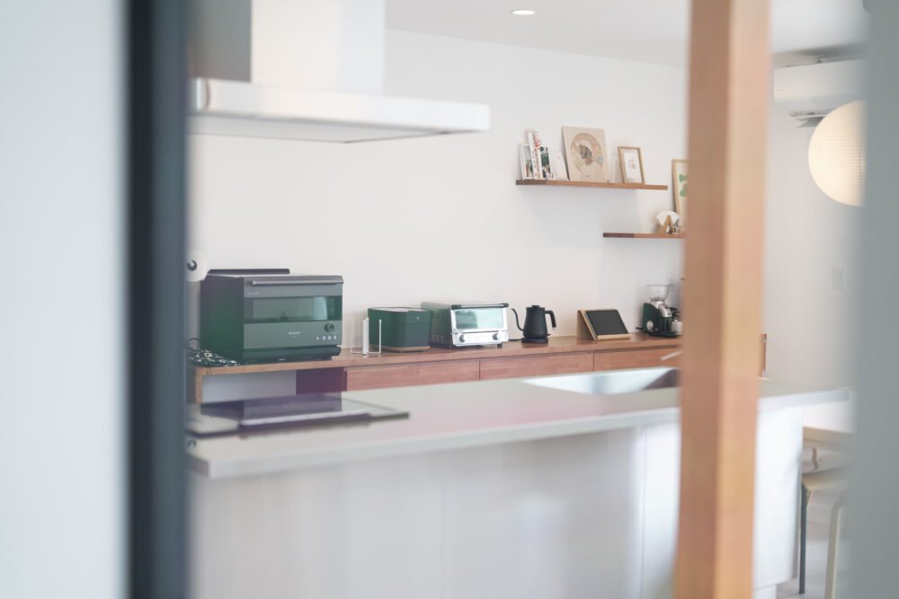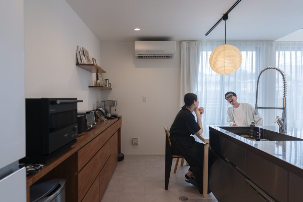 造作のカップボードは家具になじむ色味で統一し、空間のまとまりを演出
