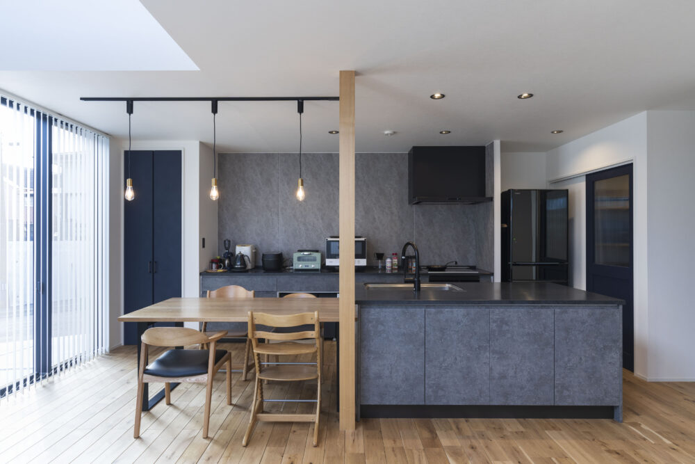 グレーとブラックのシックな色使いに、ナチュラルな木目を合わせた落ち着きと安らぎを感じさせる住まい。