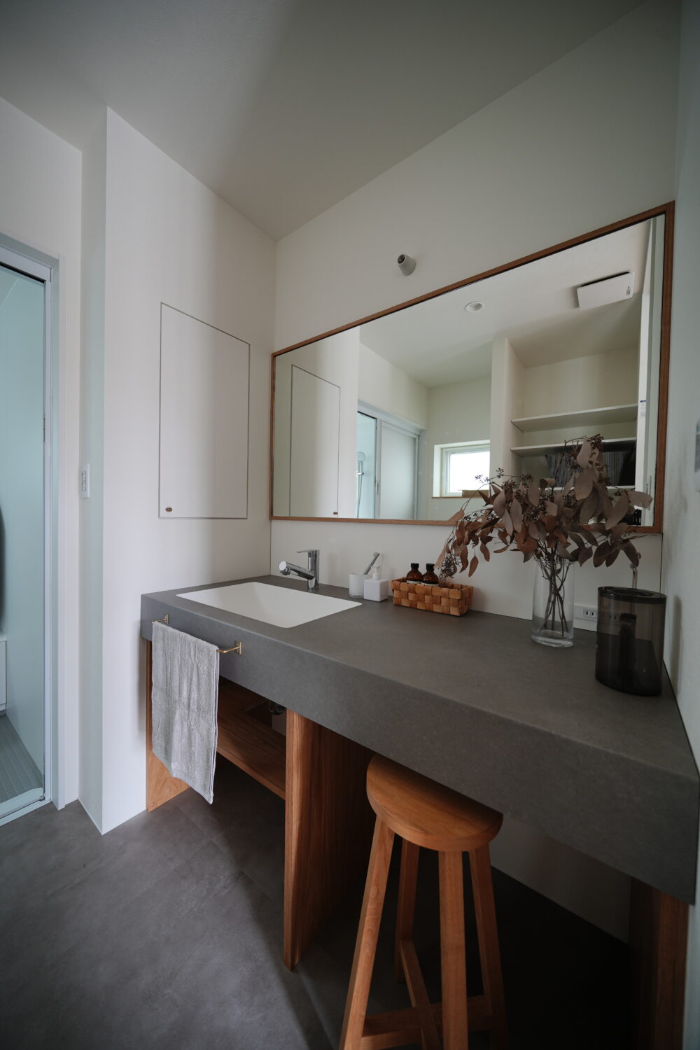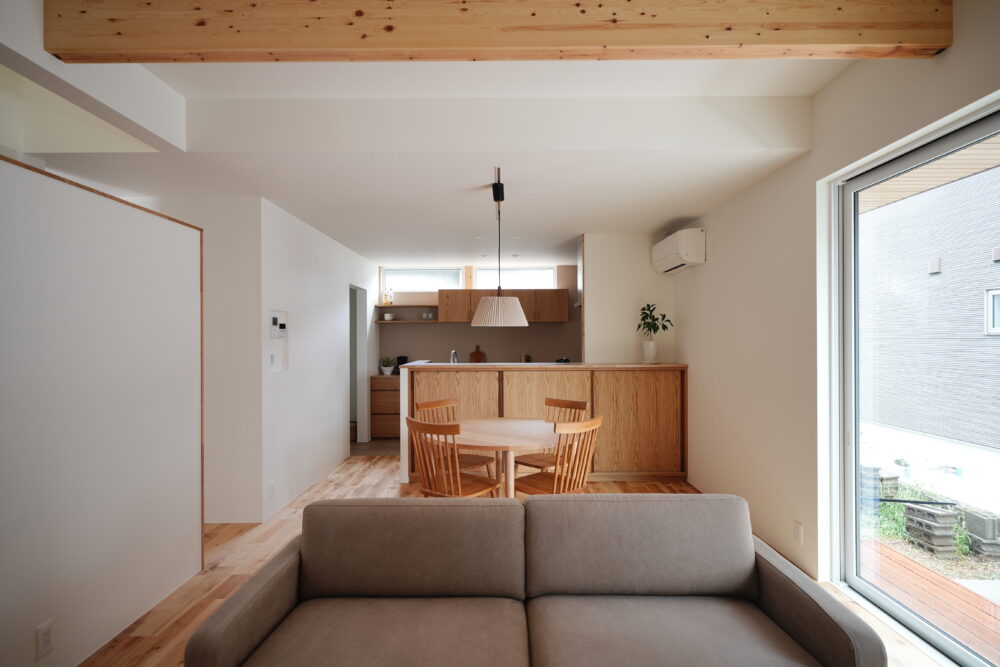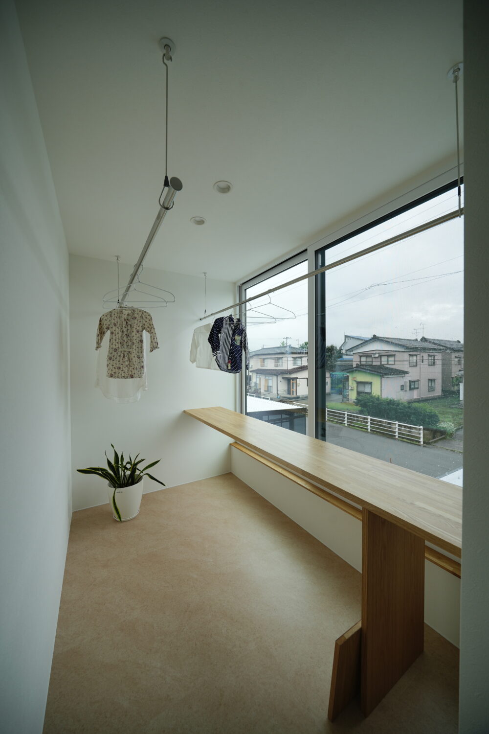 屋内でも洗濯物がしっかりと乾くよう、高さ2mの大きな窓を設け、光と風をたくさん取り込む設計に。