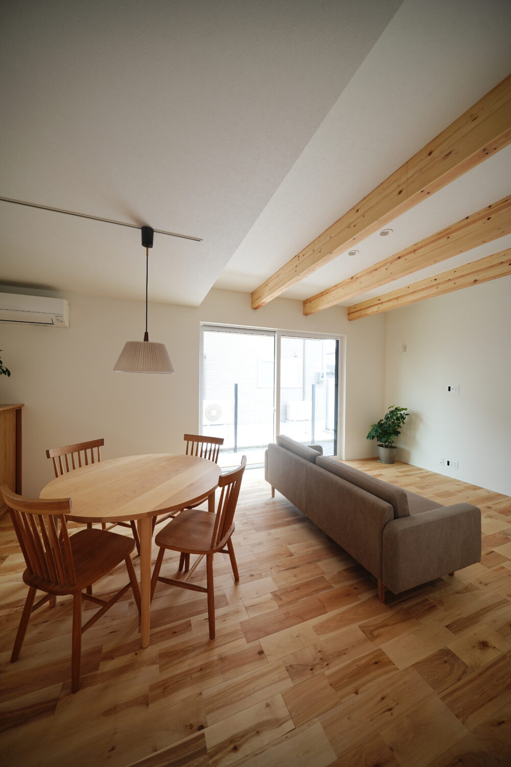 また、LDKはラウンドテーブルを中心に、天井の梁やブラケットライトがアクセントとなり、温かみのある心地よい空間に。