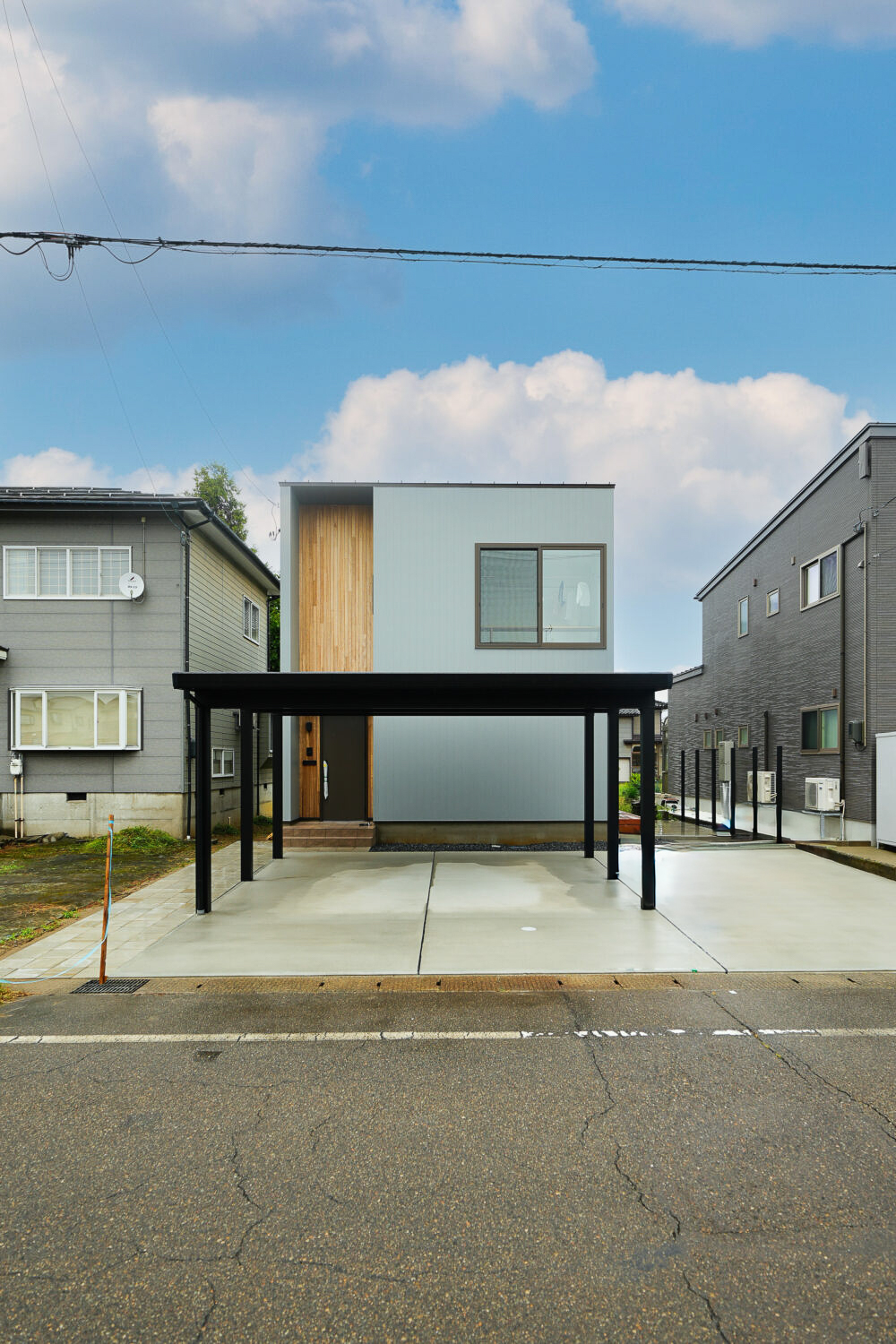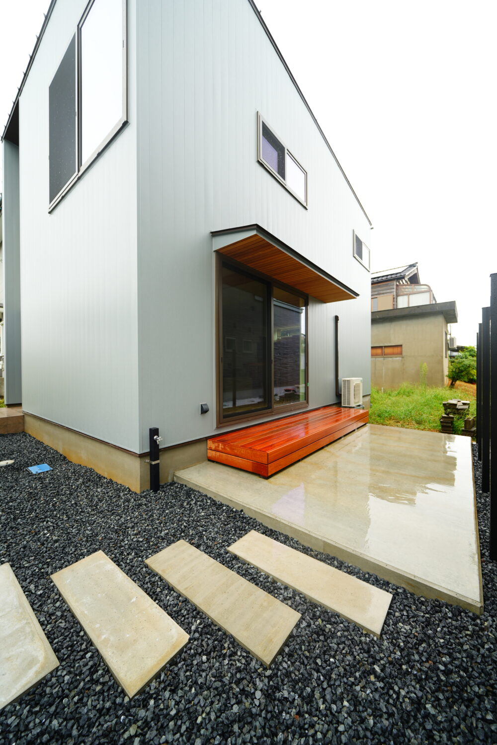 外壁はグレーのガルバリウム鋼板を採用し、落ち着きのあるスタイリッシュな外観に。